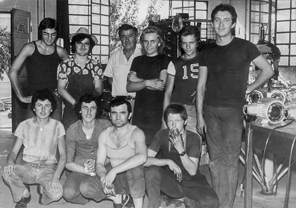 In 1973 things were very different: the people, the organization of work and its duties, the machine tools and the customers. In the beginning, there was a small workshop, a private garage, in which you got your hands dirty putting to practice the electromechanics you had learned in the laboratories of technical and professional institutes. Everything was within reach of those who really wanted to work, even the possibility of starting your own business, as, in fact, Nicolini Mario, Reggiano Luciano and Nicolini Luigi did (all in the photo).